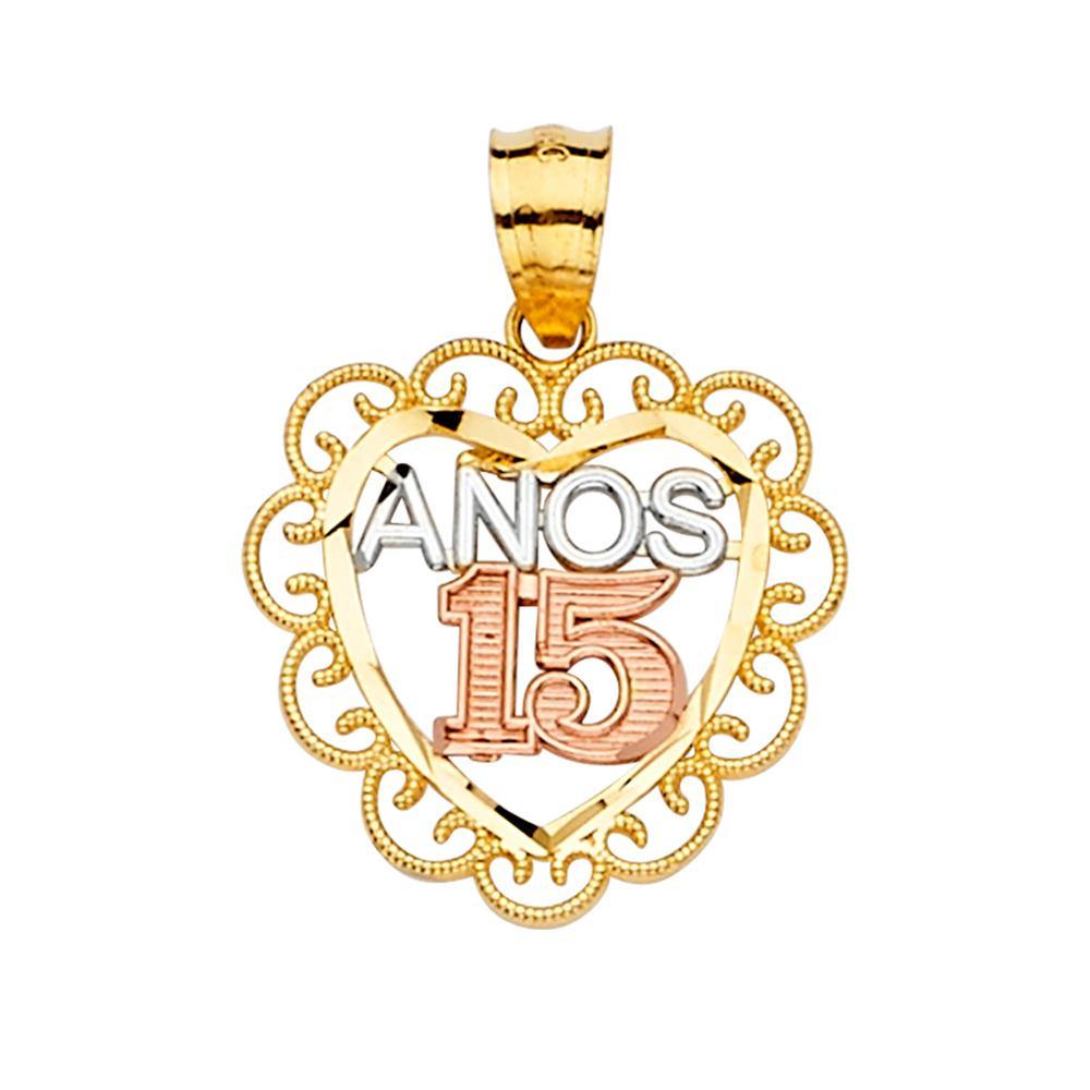 Wholesale 14K Tri Color 15 Years Pendant Weight-1.34gram, Height-24mm, Width-18mm