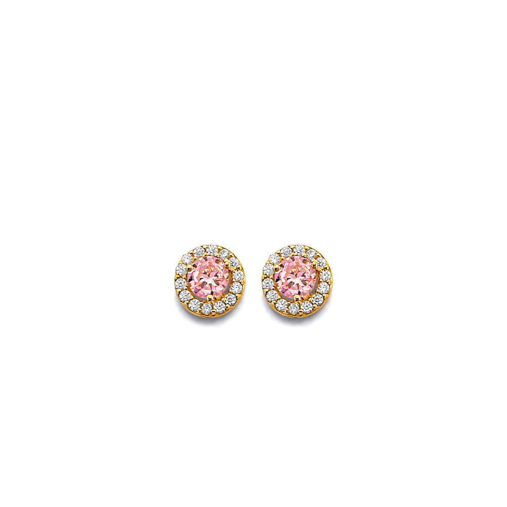 14K Yellow Gold CZ Round October Birth Stone Earrings