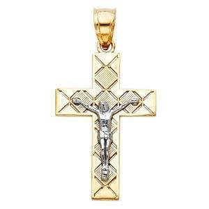 14K Gold 16mm Two Tone Jesus Crucifix Cross Religious Pendant