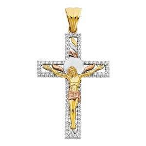 14K Tri Color 41mm CZ Jesus Religious Crucifix Cross Pendant