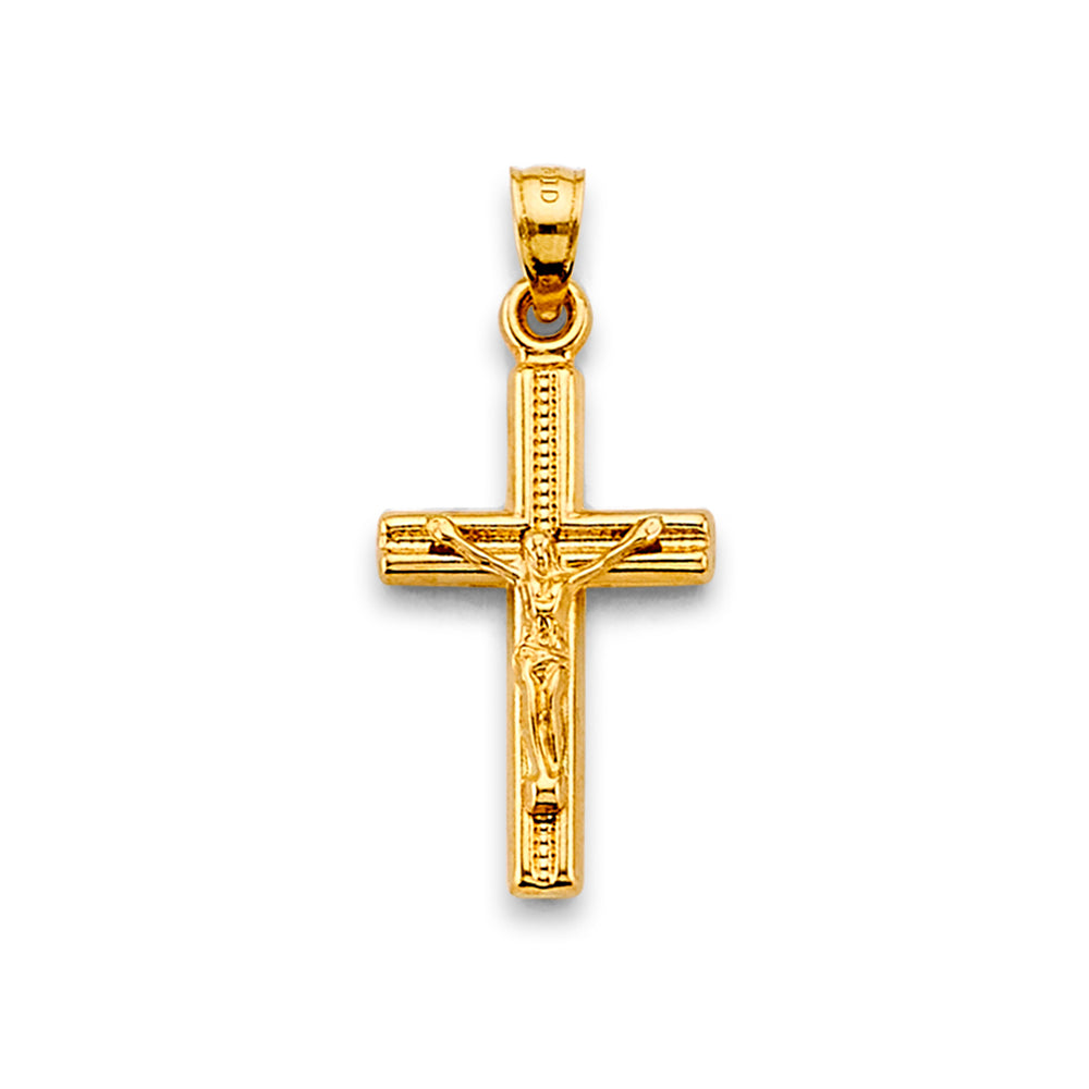 14K Yellow Gold 13mm Crucifix Cross Pendant