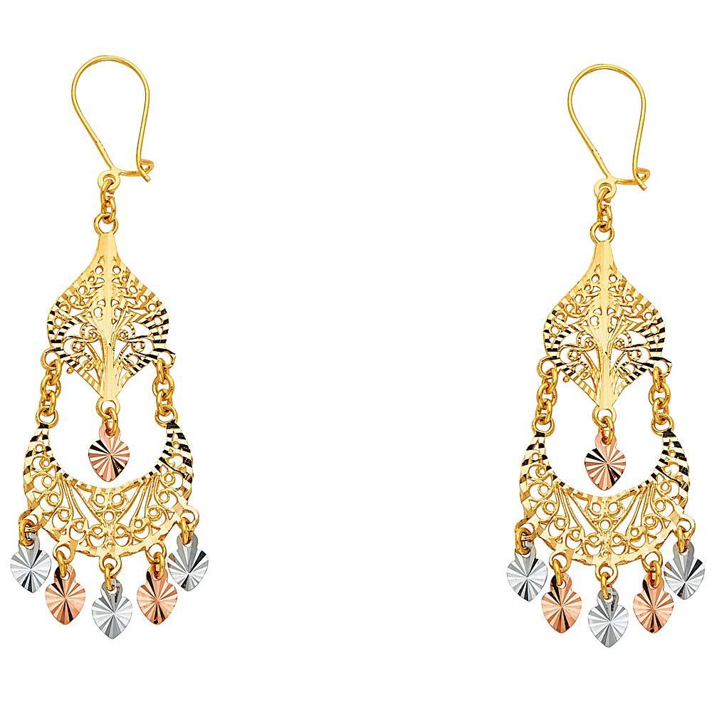14K Tri Color Gold 17mm DC Chandelier Hanging Earrings