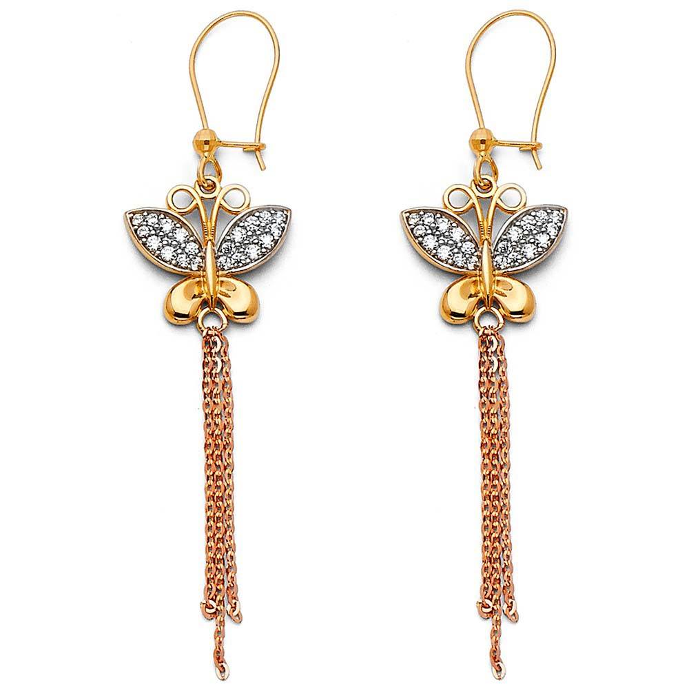 Wholesale 14K Tri Color CZ Hanging Earrings Weight-3.06gram, Height-46mm, Width-14mm