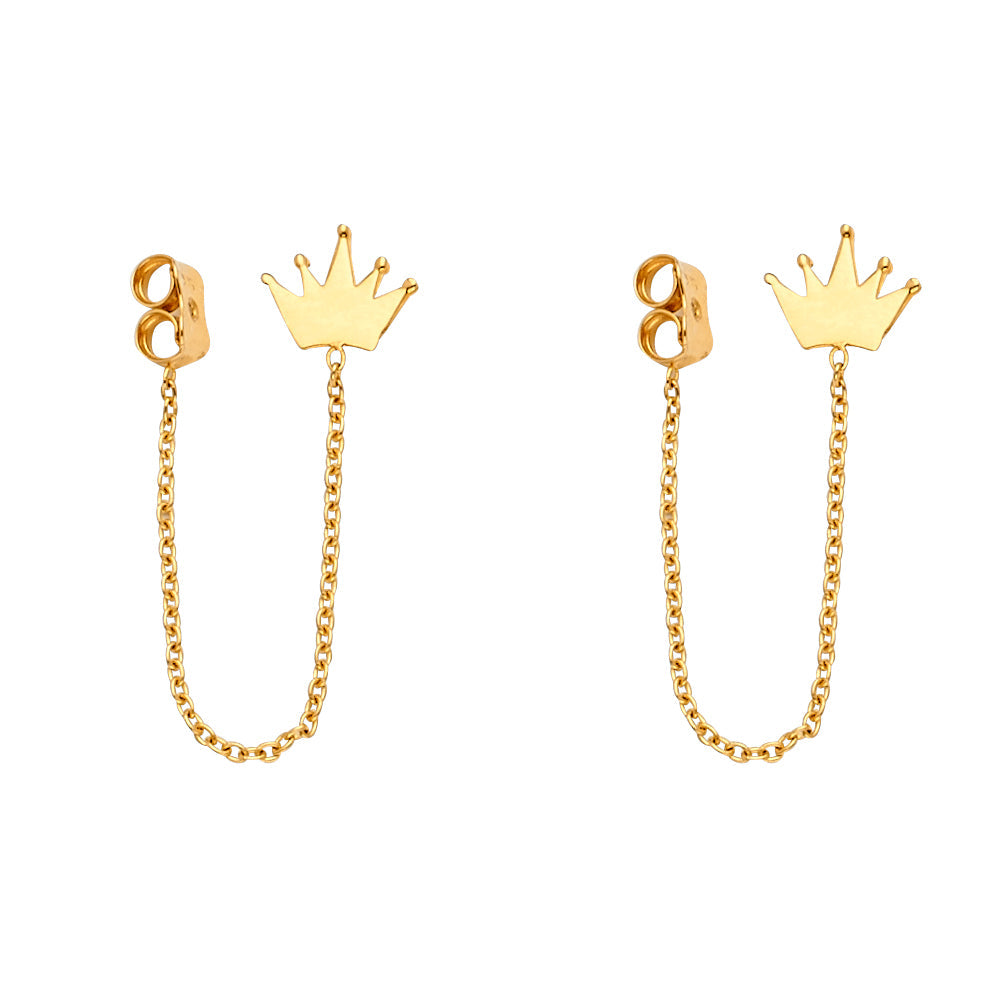 14K Yellow Gold Crown Screw Back Hanging Earrings