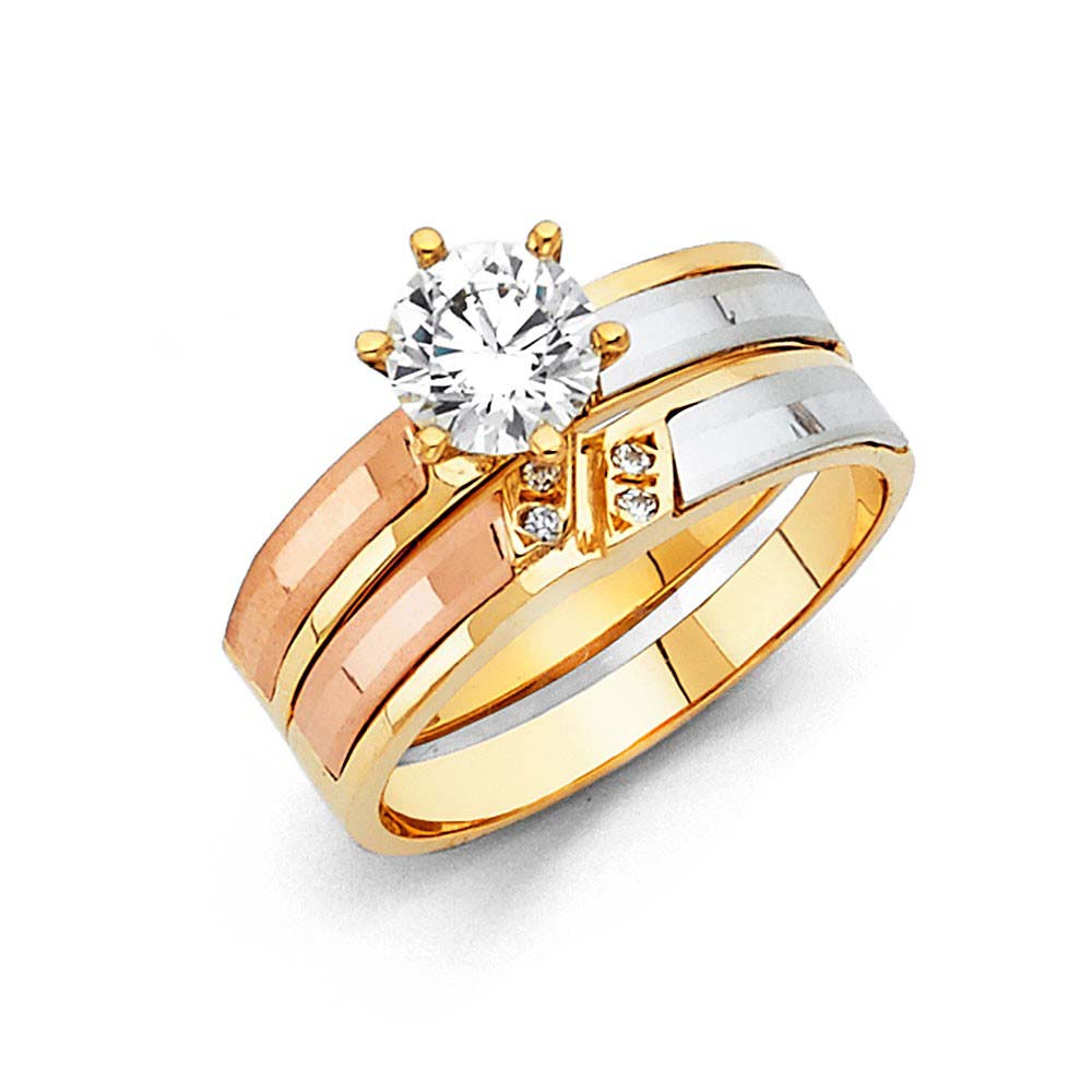 Wholesale 14K Tri Color CZ Wedding Trio Ladies Wedding Ring-Wedding Band And Engagement Rings Are Sold Separately Weight-1.83grams, Width-3mm