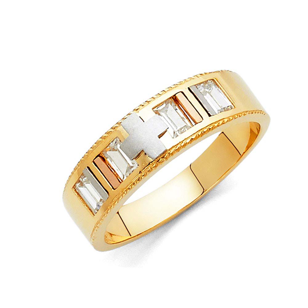 14K Tri Color Gold 6mm CZ Men's Band