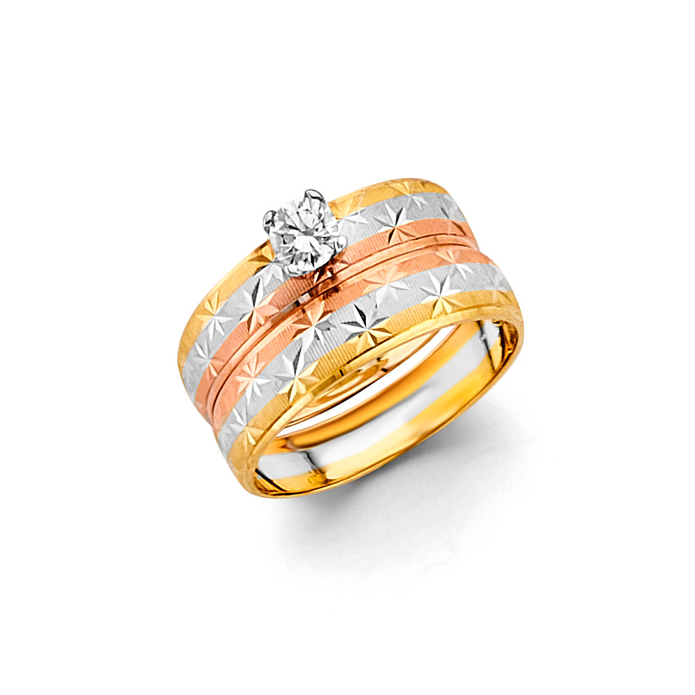 14K Tri Color Gold Ladies CZ Engagement Ring