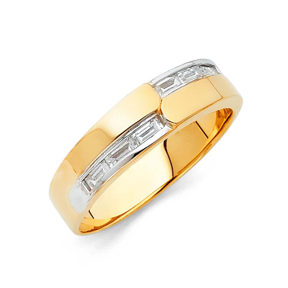 14K Two Tone 6mm CZ Wedding Trio Mens Band Sets