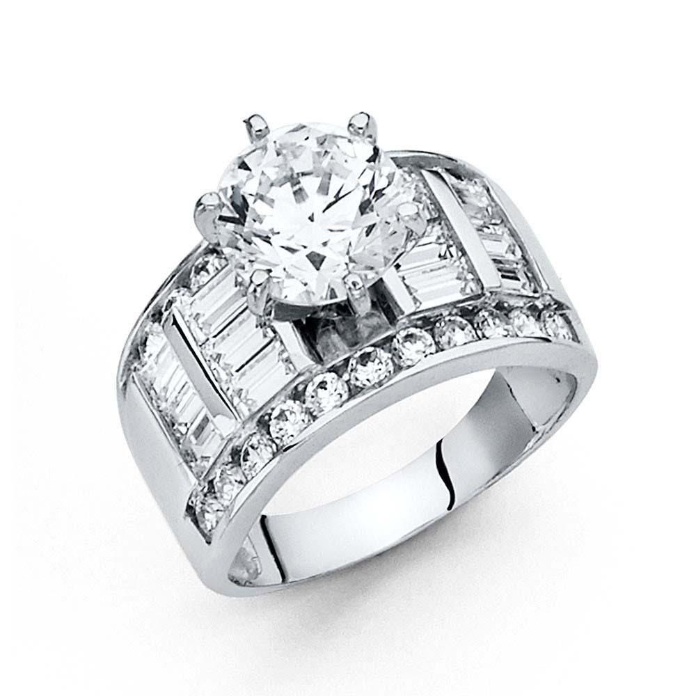 Wholesale 14K White Gold Clear CZ Engagement Ring Weight-7.05grams, Width-10mm