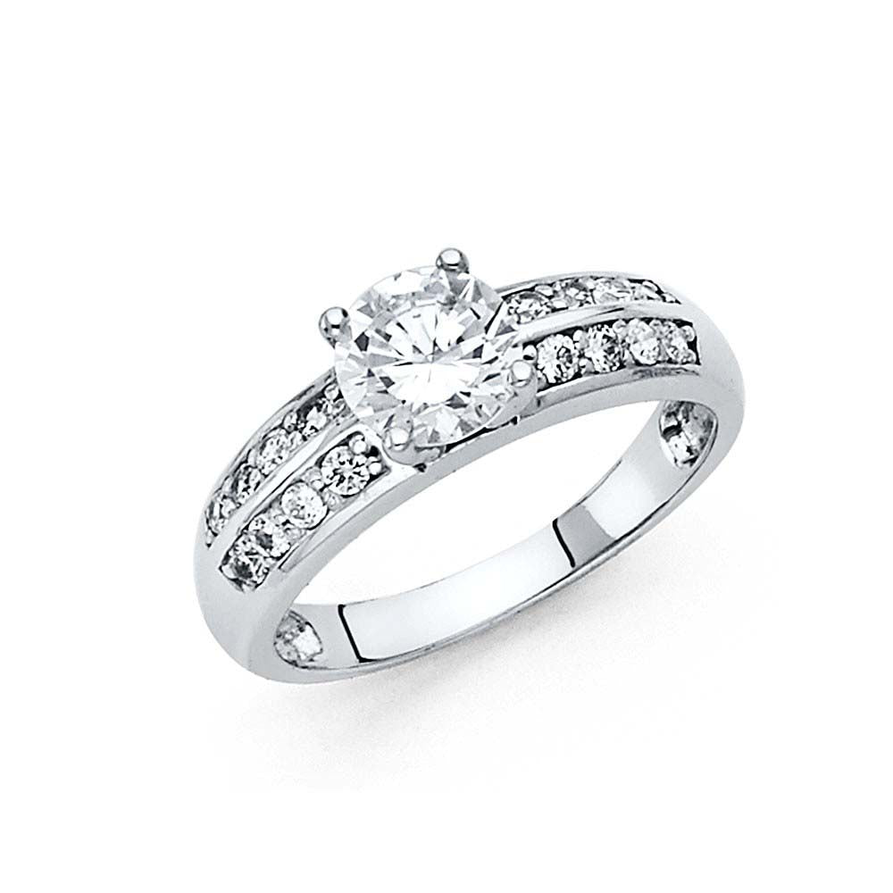Wholesale 14K White Gold CZ Engagement Ring Weight-3.32grams, Width-4mm
