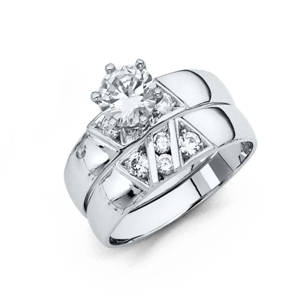 Wholesale 14K White Gold CZ Wedding Trio Ladies Wedding Ring-Wedding Band And Engagement Rings Are Sold Separately Weight-1.92grams, Width-4mm