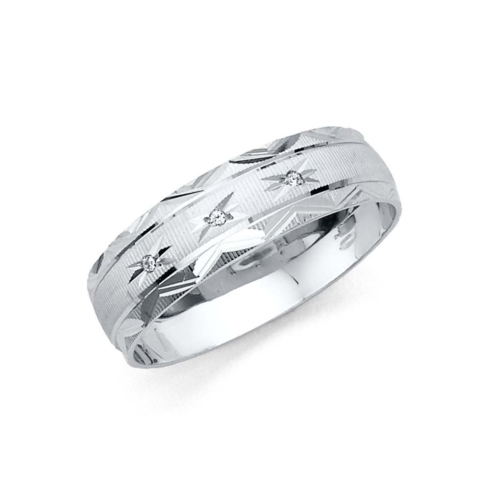 Wholesale 14K White Gold Men's CZ Wedding Band Weight-2.35grams, Width-6mm