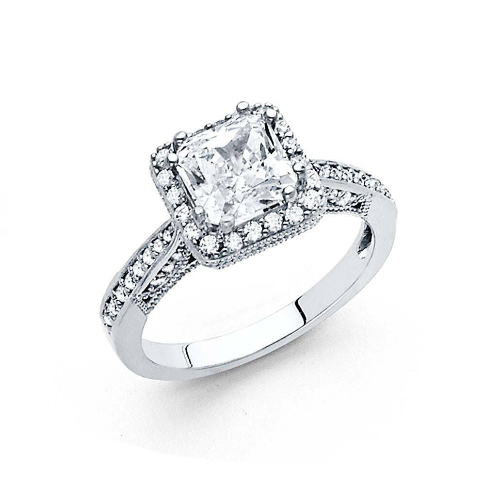 Wholesale 14K White Gold Polished Clear CZ Engagement Ring Weight-4.3grams, Width-2.5mm