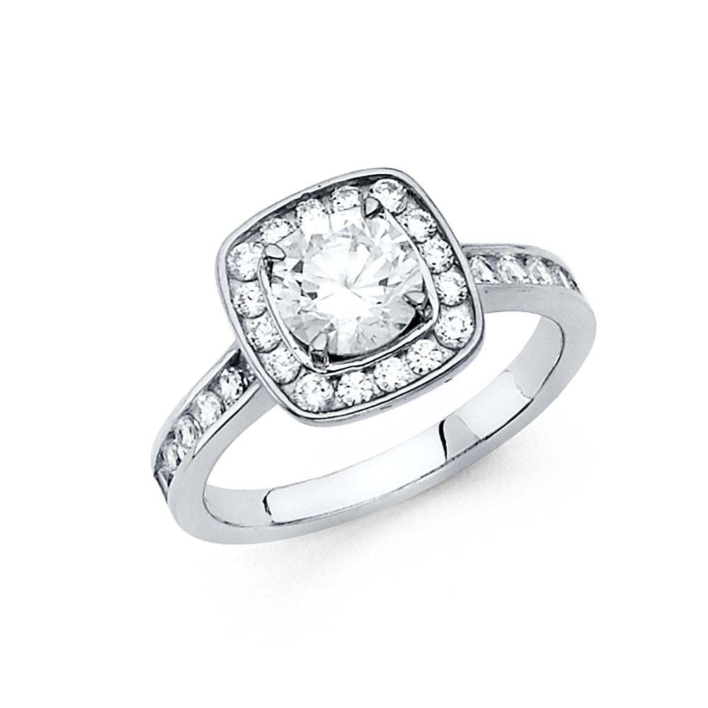 Wholesale 14K White Gold Polished Clear CZ Engagement Ring Weight-3.34grams, Width-2.5mm