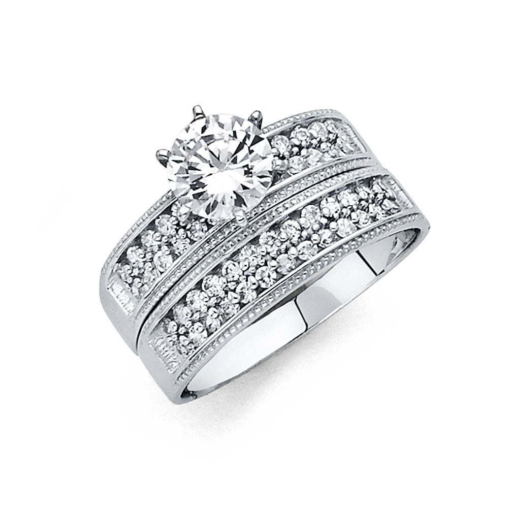 Wholesale 14K White Gold Round CZ Ladies Wedding Band Weight-2.23grams, Width-4mm