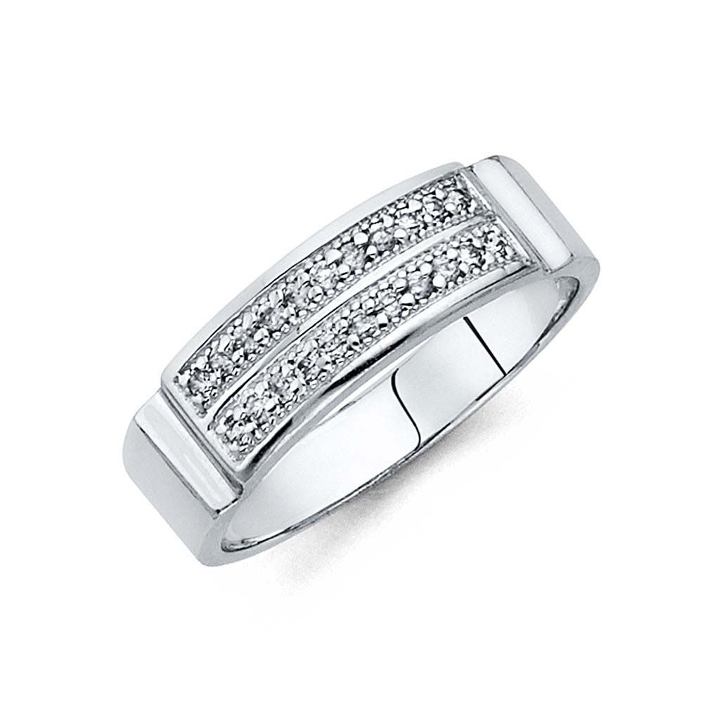 Wholesale 14K White Gold Round CZ Men's Band Weight-2.95grams, Width-6mm