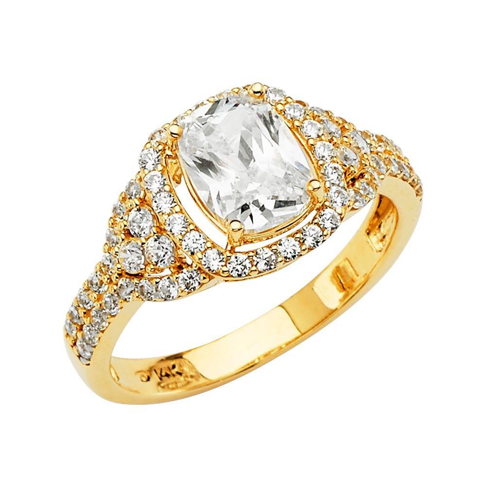 Wholesale 14K Yellow Gold CZ Round Engagement Ring Weight-3.25grams
