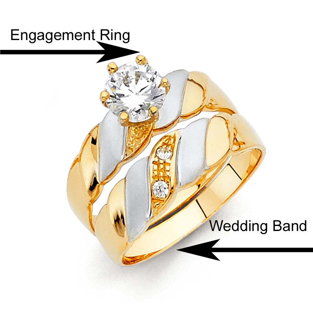 Wholesale 14K Two Tone CZ Wedding Trio Ladies Wedding Band Sets Weight-2.27grams, Width-5mm