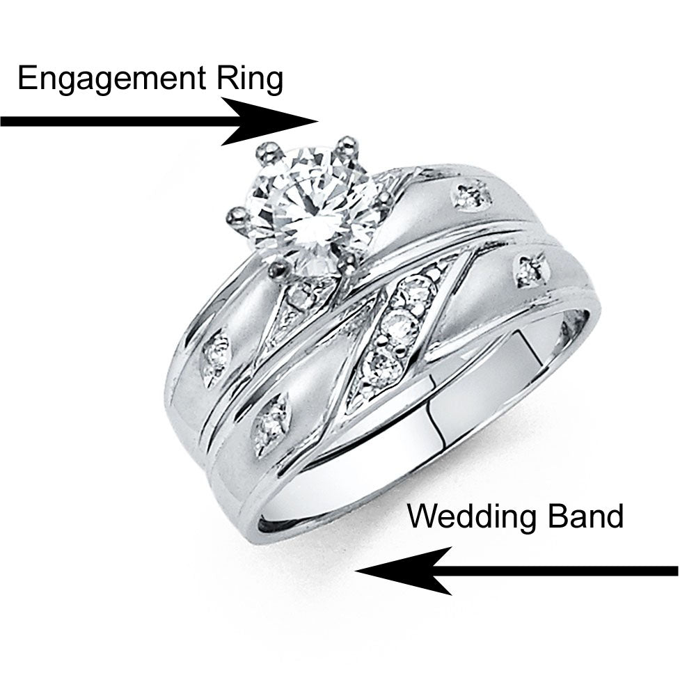 Wholesale 14K White Gold CZ Wedding Trio Ladies Wedding Band Sets Weight-1.99grams, Width-4mm