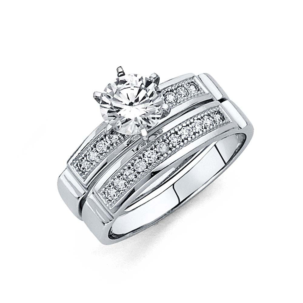 Wholesale 14K White Gold Round CZ Ladies Wedding Band-Wedding Band And Engagement Ring Are Sold Separately Weight-1.72grams, Width-3mm