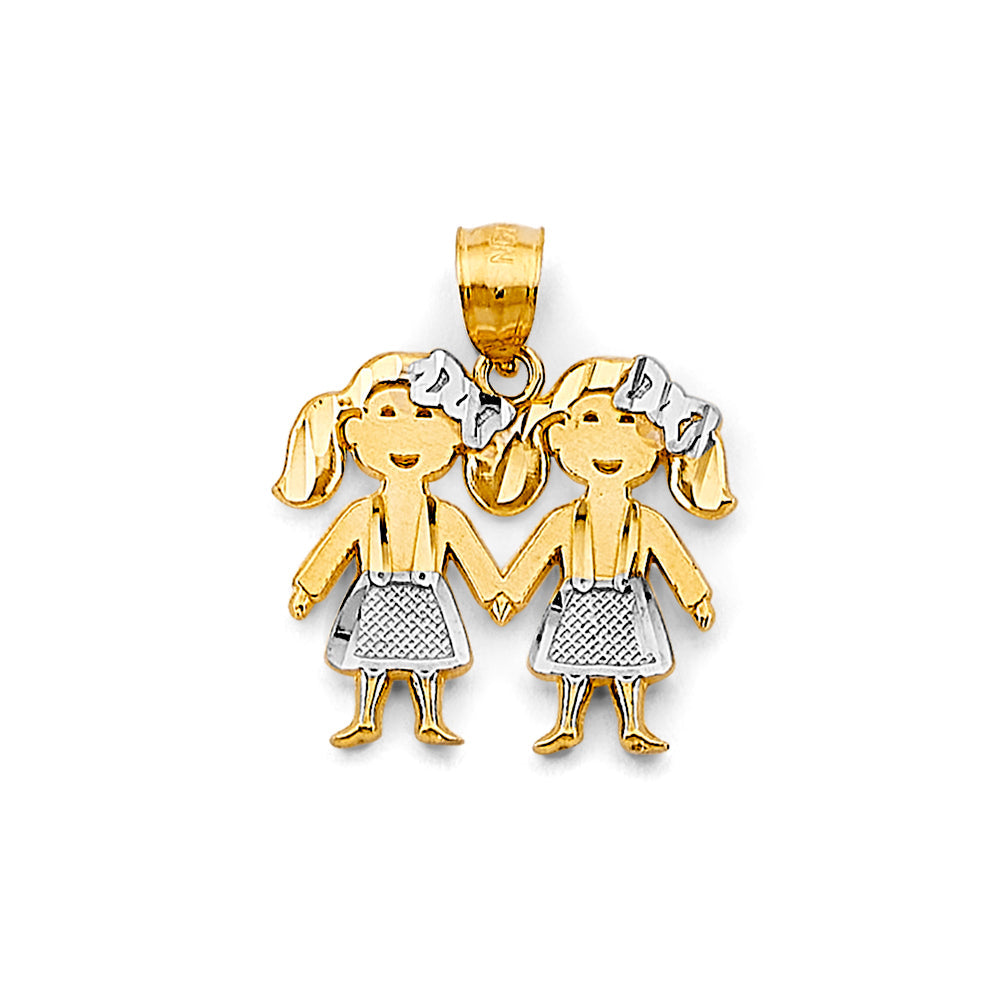 Wholesale 14K Two Tone Gold Girl-Girl Pendant Weight-1.63grams, Height-20mm, Width-20mm