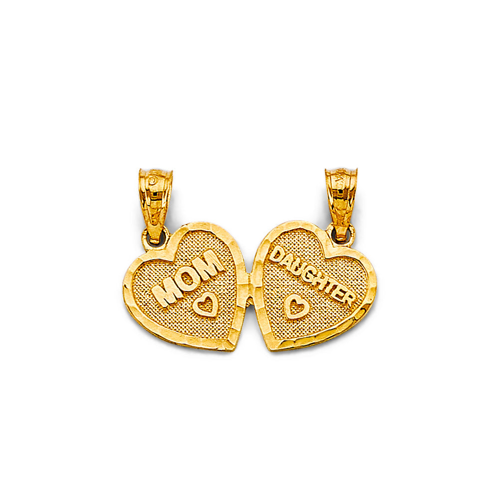 14K Yellow Gold Heart Mom And Daughter Pendant