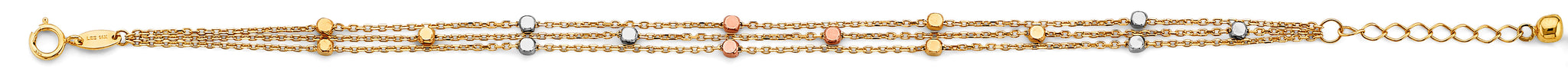 Wholesale 14K Tri Color Gold 3 Line Balls Bracelet Weight-2.39grams, Length-7+1inches
