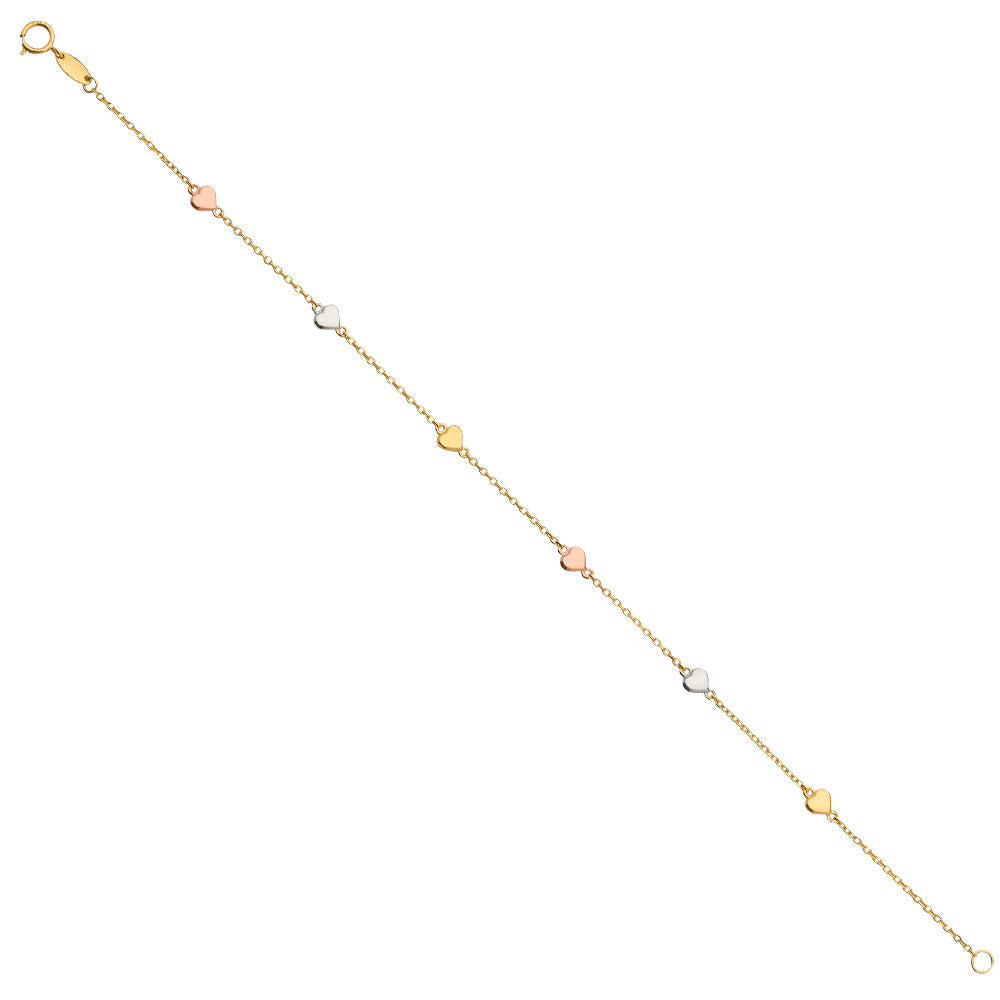 Wholesale 14K Tri Color Gold Bracelet With Heart Weight-1.47grams, Length-7.25inches