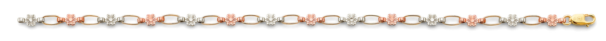 Wholesale 14K Tri Color Gold Flower Bracelet Weight-3.46grams, Length-7.25inches