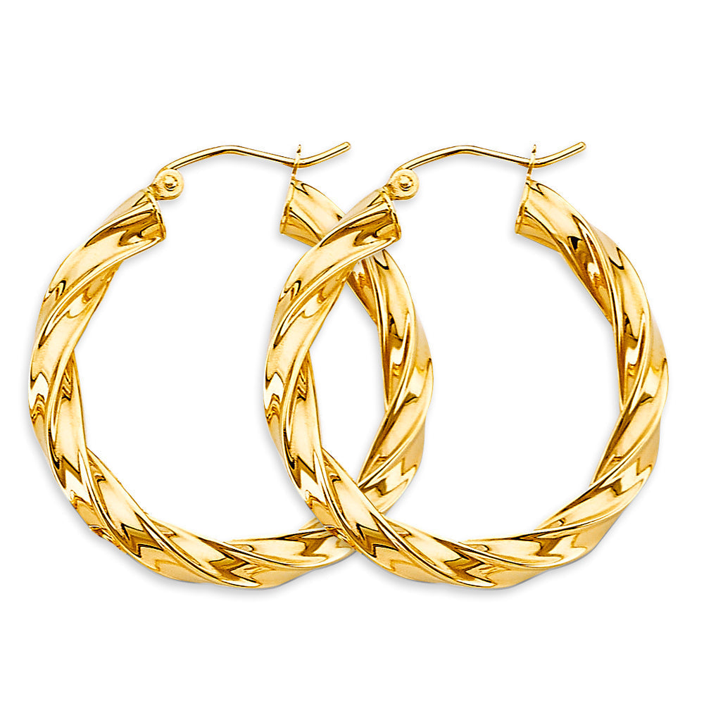 14K Yellow Gold 4mm Twisted 30mm Hoop Earrings