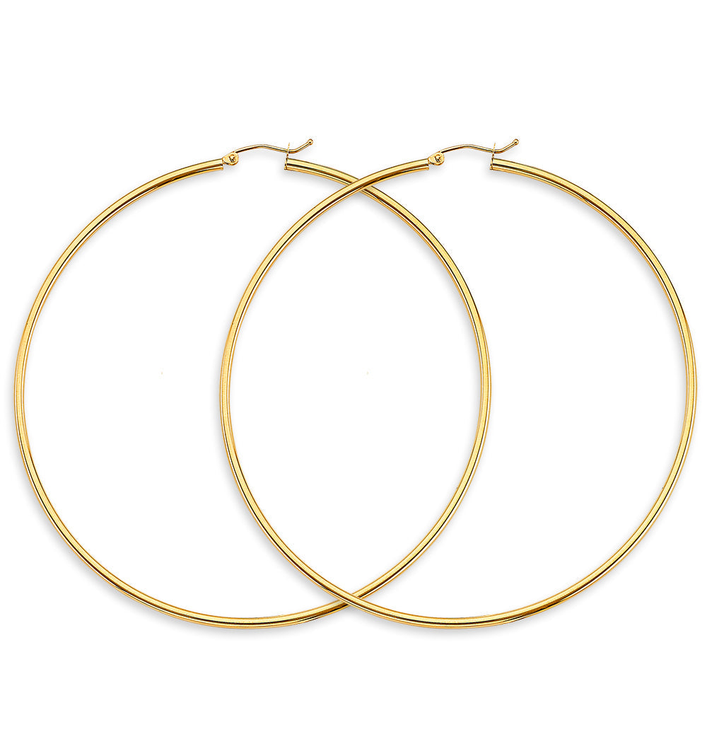 Wholesale 14K Yellow Gold Budded DC Big Round Tube 2mm Polish Hoop Earrings Weight-4.23grams, Height-90mm, Width-90mm, Diameter-2mm