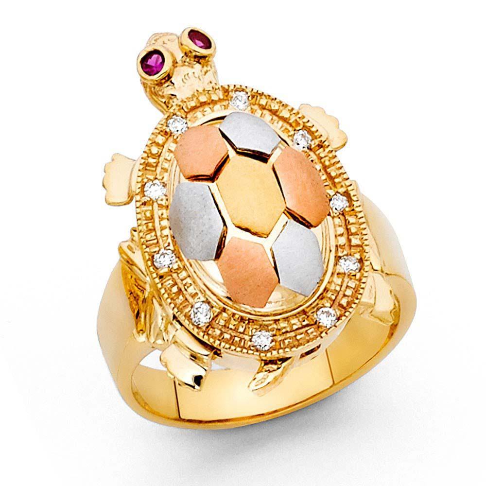 Wholesale 14K Tri Color Pink And Clear CZ Fancy Turtle Ring Weight-9.83grams, Width-25mm