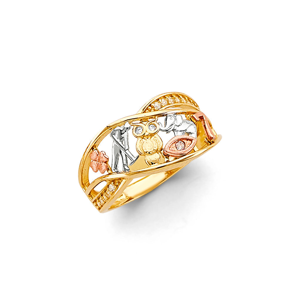 Wholesale 14K Tri Color Gold CZ Wave Lucky Ring Weight-2.67grams