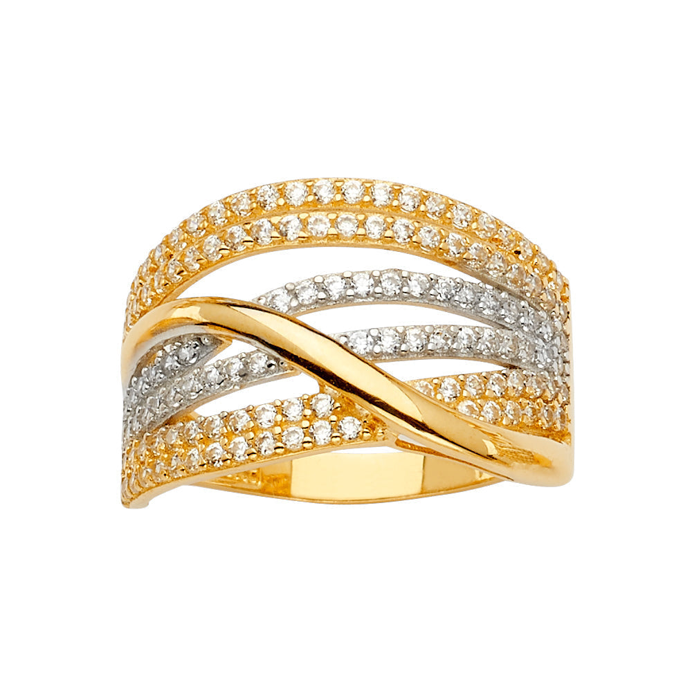 Wholesale 14K Tri Color Gold Multi Line MP CZ Ring Weight-3.07grams