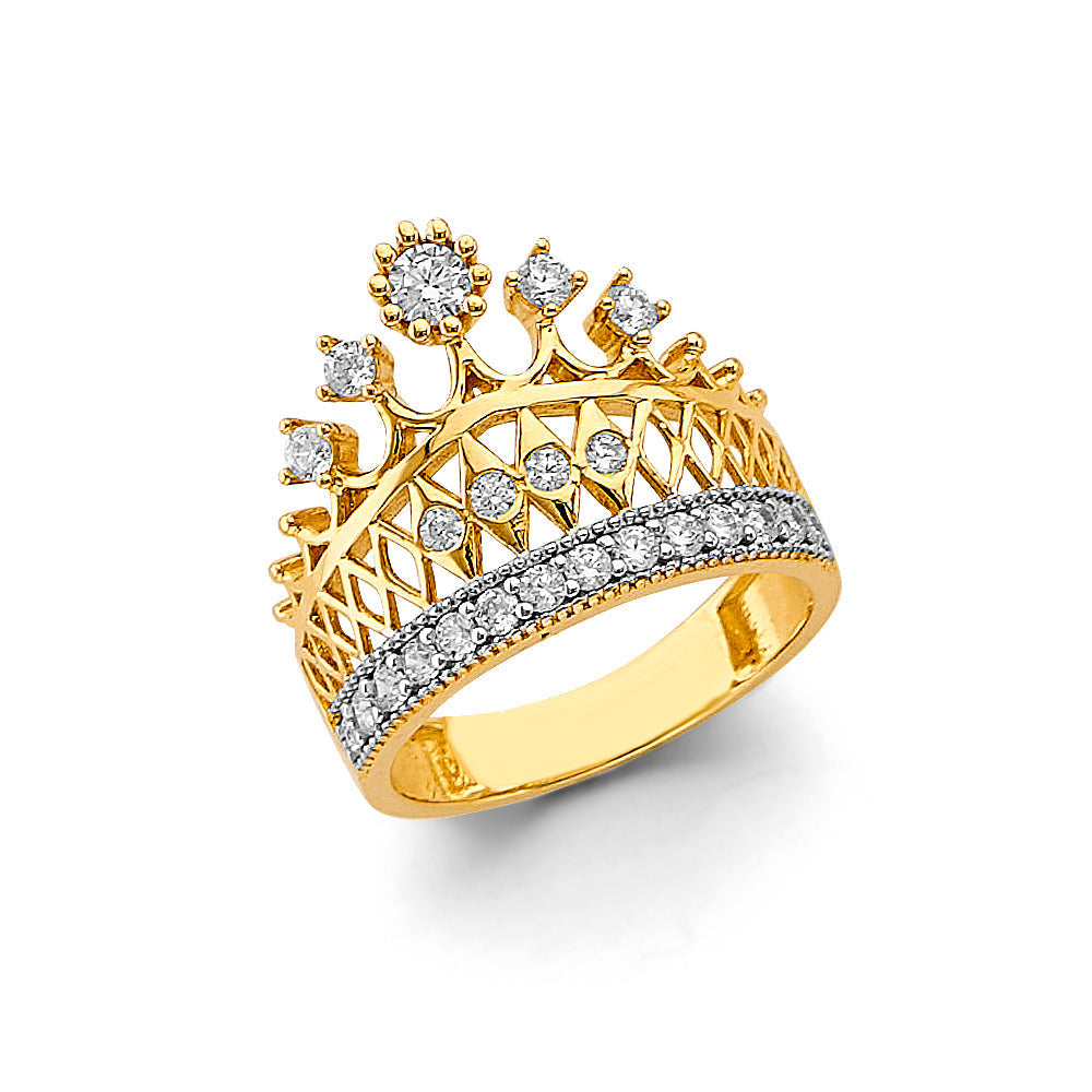 Wholesale 14K Two Tone Gold CZ Crown Ring Weight-4.04grams