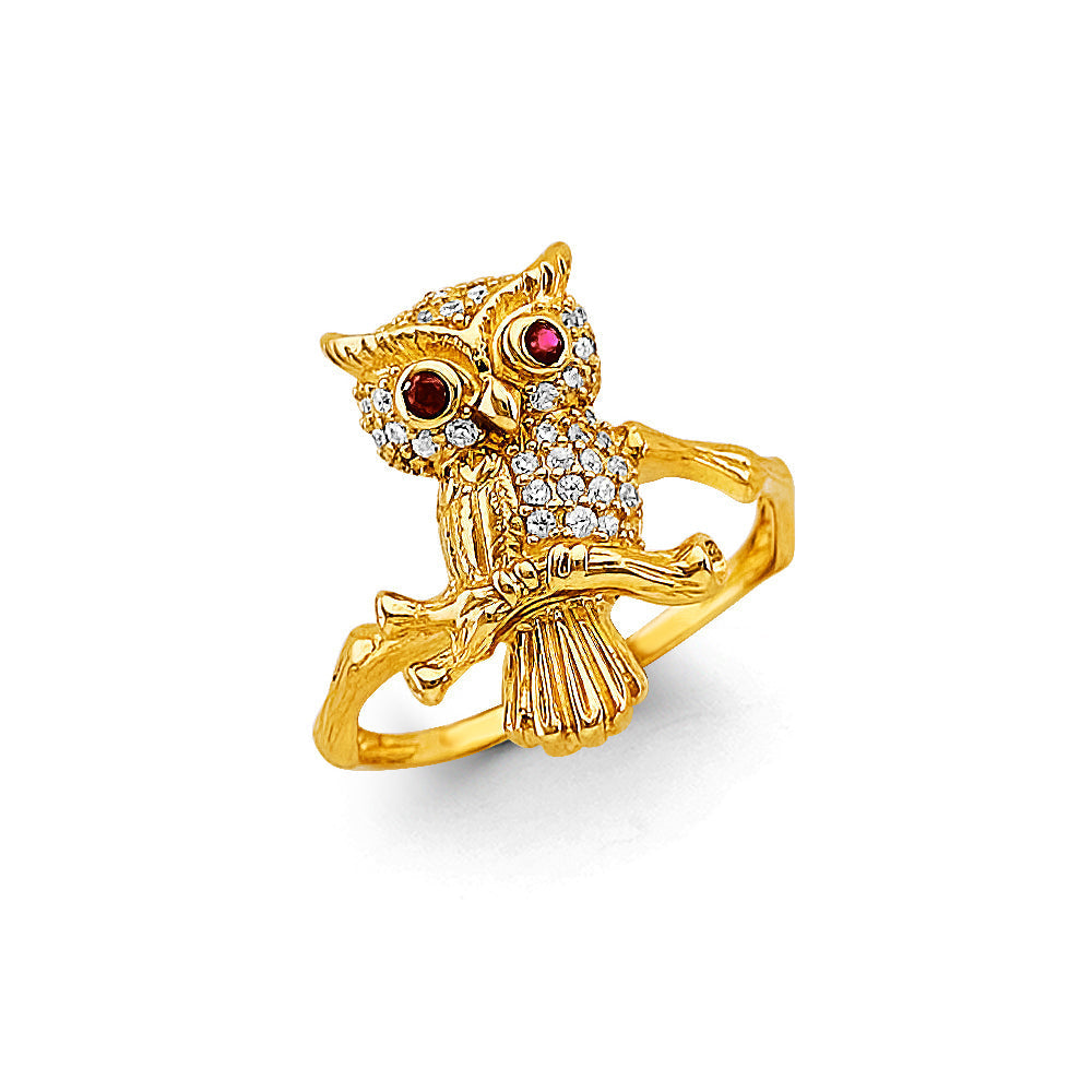 14K Two Tone Gold CZ Owl Ring