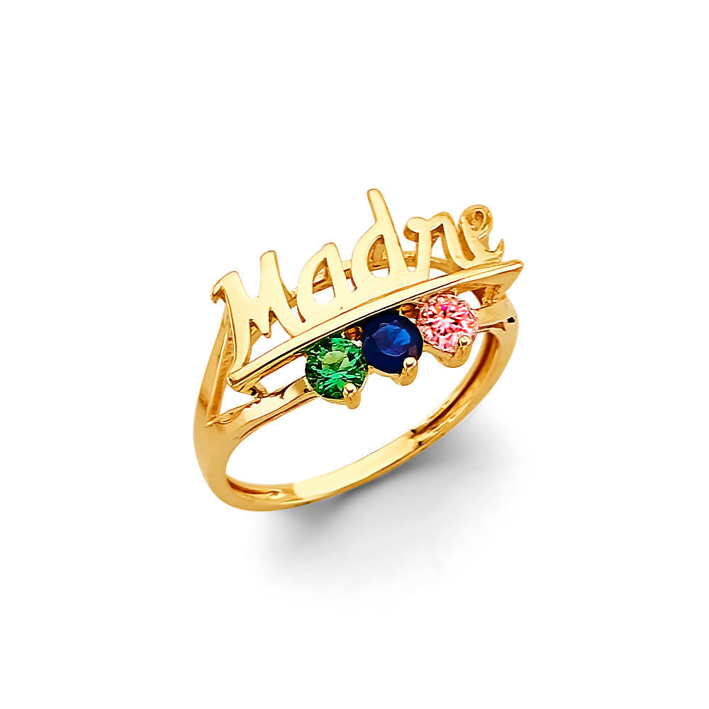14K Yellow Gold CZ 3 Stone Mother's Ring