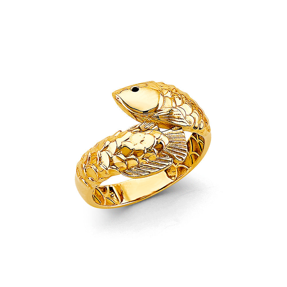 Wholesale 14K Yellow Gold Lucky Arowana Fish Ring Weight-2.46grams