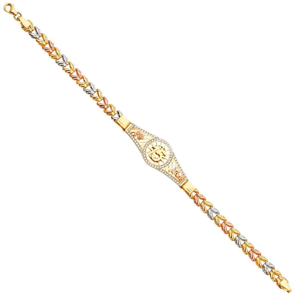 Wholesale 14K Tricolor 15 Years CZ Bracelet Weight-6.33grams, Length-7.5inches