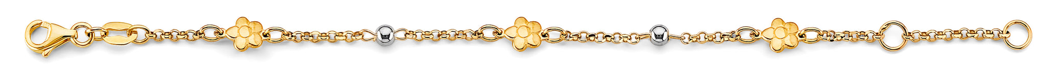 Wholesale 14K Two Tone Gold Flower Baby Bracelet Weight-1.94grams, Length-5+1inches
