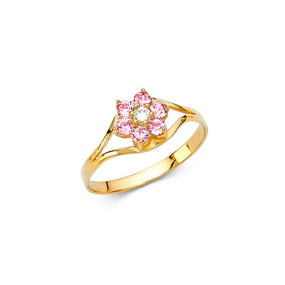 Wholesale 14K Yellow Gold Pink CZ OCT Birth Stone Babies Ring
