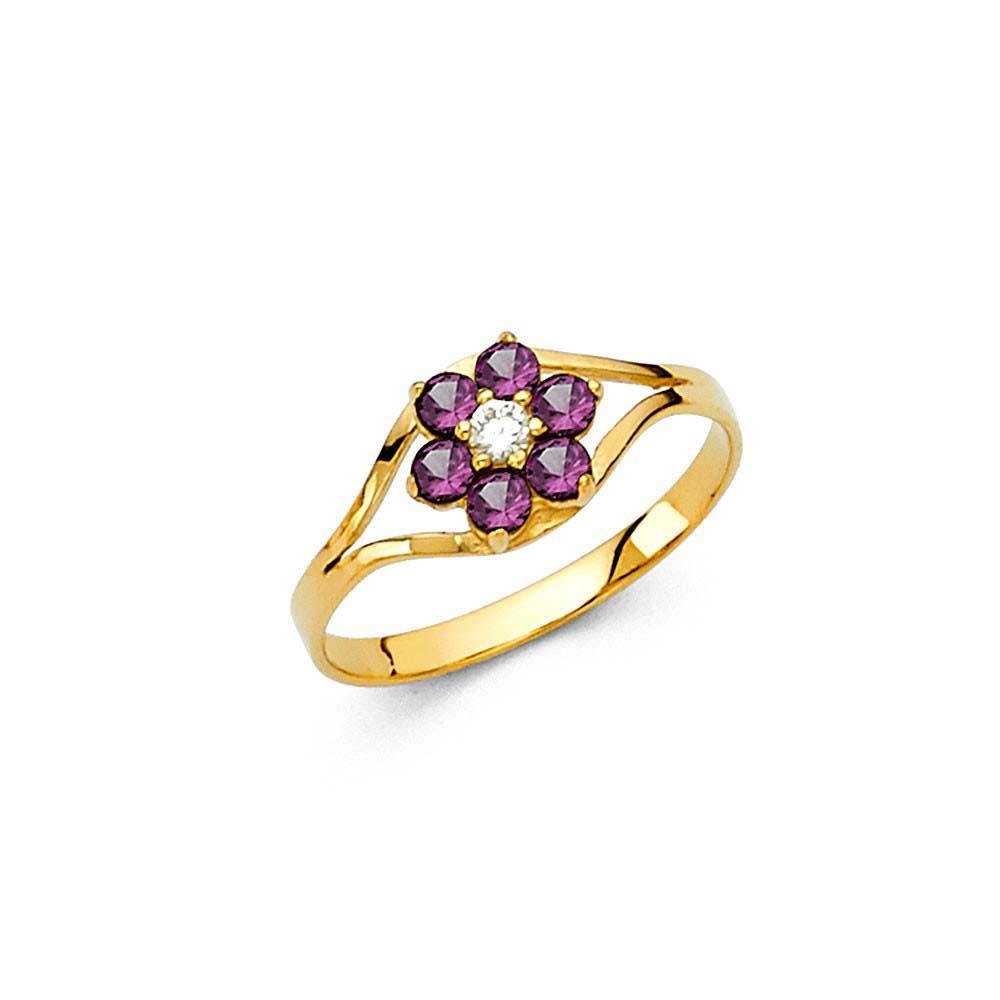 14K Yellow Gold Purple CZ JUN Birth Stone Babies Ring
