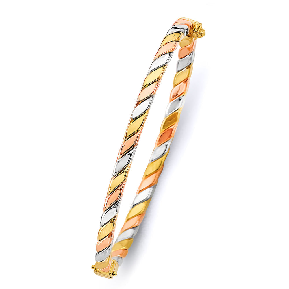 14K Tri Color Gold Square Tube Hollow Braided Oval Bangle