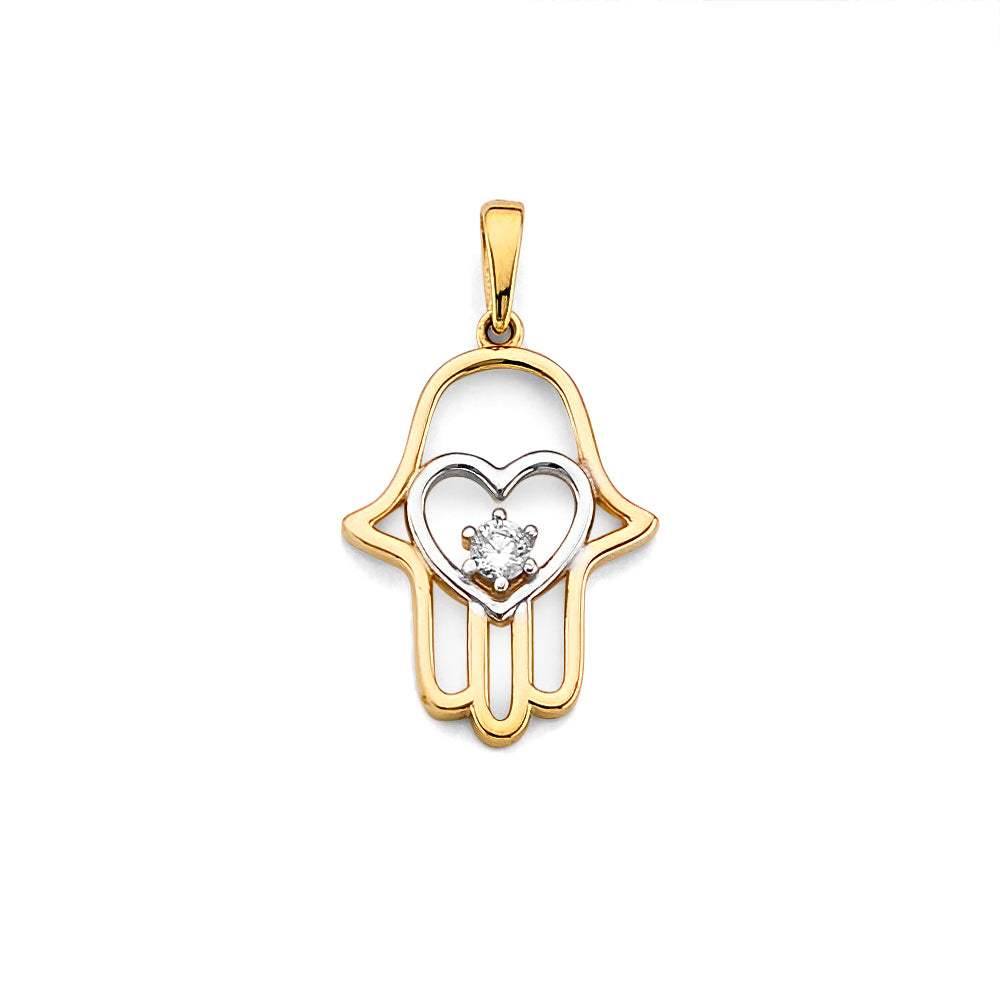 Wholesale 14K Two Tone Gold CZ Hamsa Hand Pendant Weight-0.86grams, Height-20mm, Width-13mm