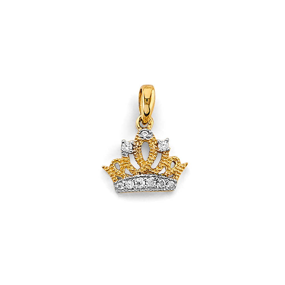 14K Two Tone Gold CZ Small Crown Pendant