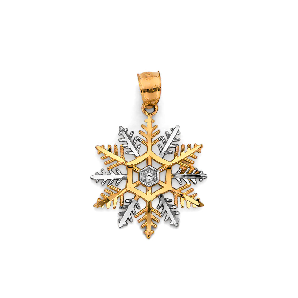 14K Two Tone Gold CZ Snow Flakes Pendant