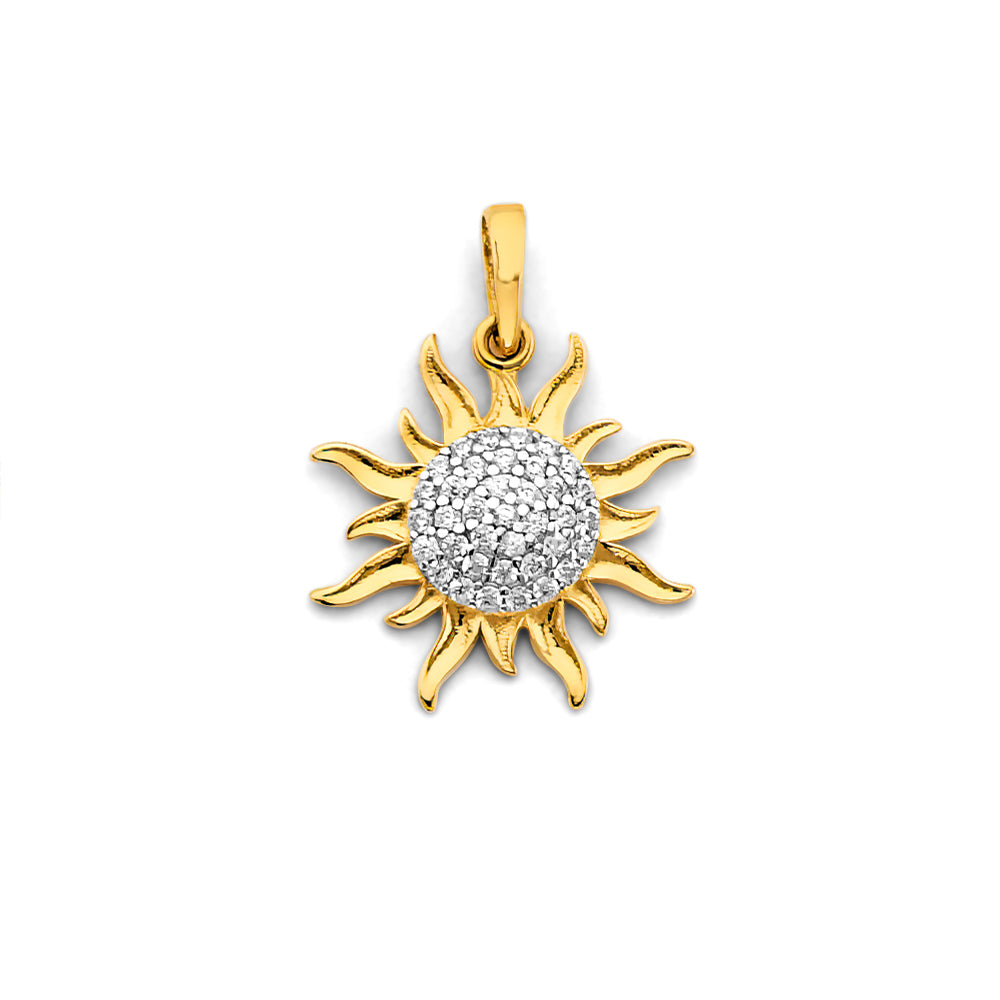 Wholesale 14K Two Tone Gold CZ Sun Pendant Weight-1.15grams, Height-20mm, Width-15mm