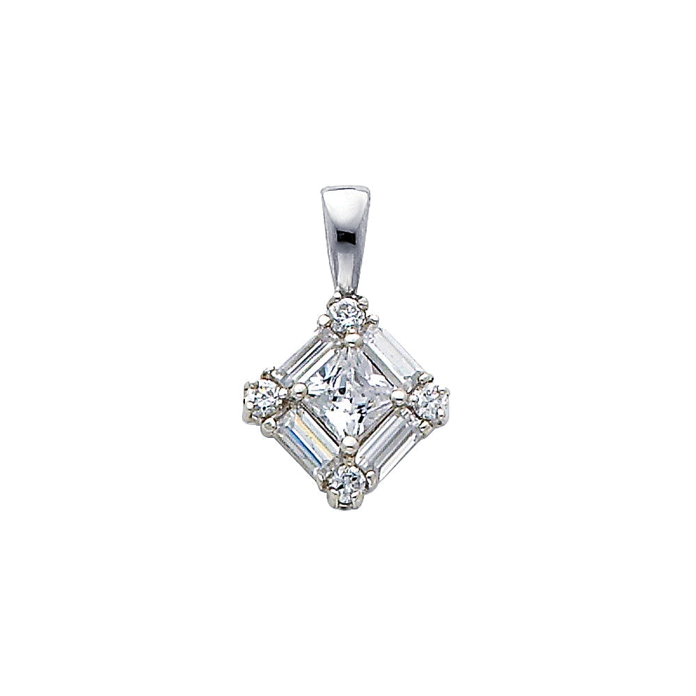 Wholesale 14K White Gold CZ Square 12mm Pendant Weight-1.06grams, Height-12mm, Width-12mm