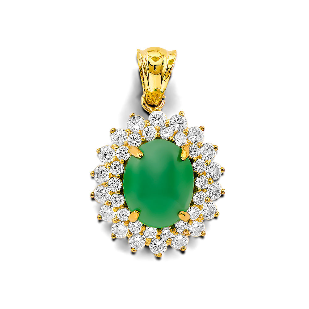 Wholesale 14K Yellow Gold 18mm CZ Jade Pendant Weight-5.21grams, Height-28mm, Width-18mm