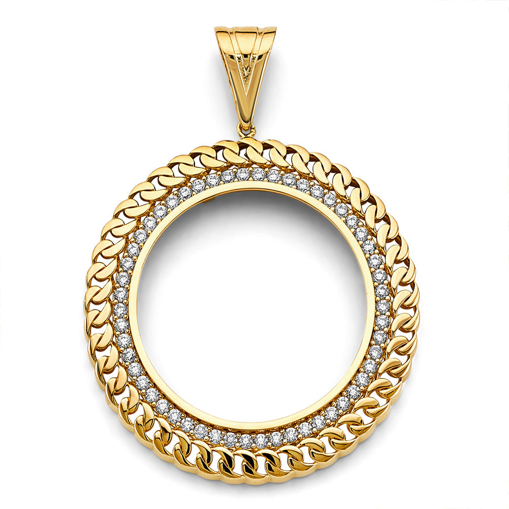 14K Yellow Gold CZ Link Coin Frame